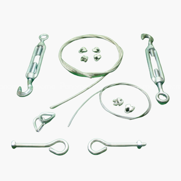 Hệ thống ống gió vải thường được treo trên trần nhà bằng cáp treo mạ kẽm. Đây là  là phụ kiện giúp cố định và treo hệ thống ống gió.