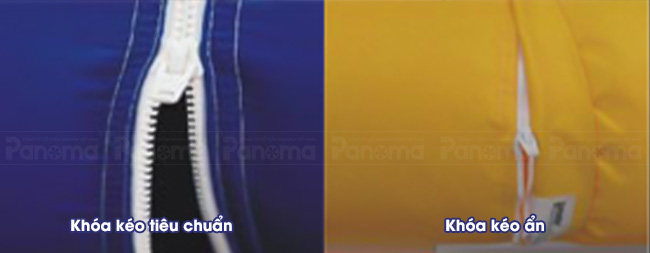 Khóa kéo này thường được thiết kế dạng concealed zipper (khóa kéo ẩn), bên ngoài được che bởi lớp vải bảo vệ nhằm đảm bảo tính thẩm mỹ và độ bền. Ngoài ra vẫn có thể lựa chọn dòng khóa kéo tiêu chuẩn với phần khóa để lộ ra bên ngoài.
