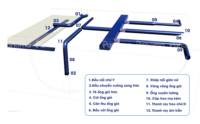 • Kết nối hệ thống ống gió kim loại với ống gió vải
